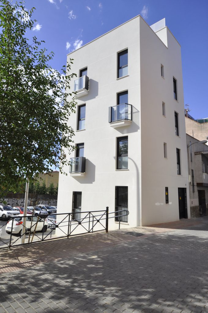 Se trata de un edificio de 4 viviendas en Carabanchel de consumo casi nulo que combina los sistemas de aerotermia con suelo radiante/refrigerante un alto nivel de aislamiento con sistema de fachada SATE y una ventilación mecánica controlada para alcanzar una etiqueta energética A.